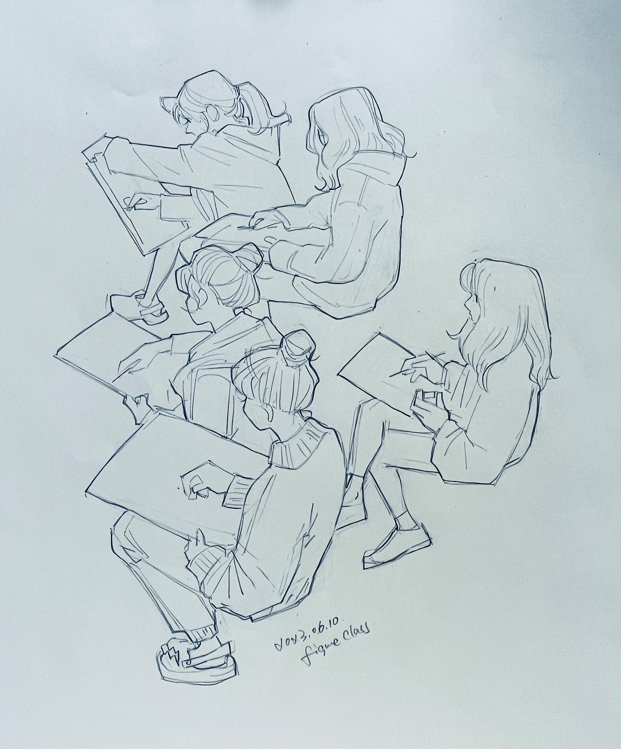 Today when I was having figure drawing class, I sat back and drew the crew. And suddenly the memory of workshops in AAU flooded back. What I drew were the teachers and classmates then and now it’s my students… Those days in Bradley hall/60 federal are always the treasure in my heart.